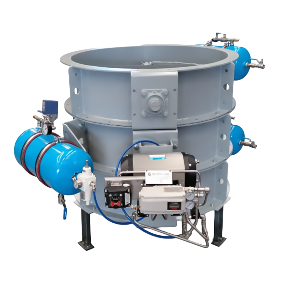 Double Flap Valves are safety and flow‑control devices typically used in pneumatic systems or air/material conveying lines. Their primary function is to ensure airtight sealing in both flow directions, preventing any backflow of material or air toward the upstream section of the circuit — an essential requirement in systems subject to overpressure, vacuum conditions, or the handling of potentially abrasive powders.